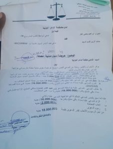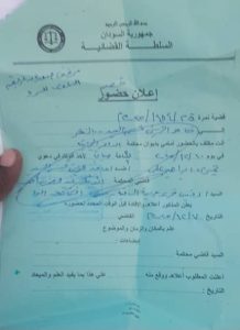 أنت مكلف بالحضور أمامي بديوان محكمة الدامر في يوم ١٠ / ١٢/ ٢٠٢٥م الساعة التاسعة والنصف صباحا لأخذ أقوالك في دعوى نميري إبراهيم علي / ضد / حامد الزين قسم السيد