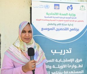 وقالت مسؤولة التطعيم بمنظمة الصحة العالمية مكتب السودان د. حنان مختار، في تصريح صحفي، إن فعاليات الورشة لتدريب فرق الإستجابة للأمراض المشمولة بالتطعيم التي بدأت اليوم تعتبر خطوة مهمة في ظل الظروف الحالية، وعدم إمكانية الوصول لكل الأطفال خاصة في المناطق البعيدة والتي تعاني من الحروب والنزوح.