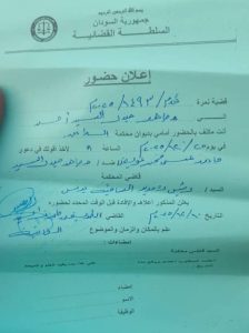 أنت مكلف بالحضور أمامي بديوان محكمة الدامر في يوم ٢٥/ ١٢/ ٢٠٢٥م الساعة ٨ صباحا لأخذ أقوالك في دعوى حامد عيسى محمد عويض / ضد / مجاهد حيدر السيد