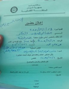 أنت مكلف بالحضور أمامي بديوان محكمة الدامر الجزئية في يوم ١٥/ ١٢/ ٢٠٢٥م الساعة التاسعة والنصف صباحا لأخذ أقوالك في دعوى محمد علي محمد / ضد / النوراني الحاج