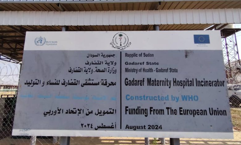 عطفاً على الحديث عاليه فإن وزارة الصحة بالولاية وإكمالاً لمشروع النظافة قد إستقدمت محطات معالجة(محارق) للتخلص من النفايات الطبية الخطرة بوسائل علمية وطرائق آمنة؛ عليه فإن الإسهام مع الوزارة في عملية التخلص من النفايات الطبية يؤدي لتطوير الخدمة وتجويدها بتلك المؤسسات؛ حتى تصل بخدماتها لمستوى مهني مقبول وملتزم بمواصفات الجودة وعمل المؤسسات الصحية بولاية القضارف..