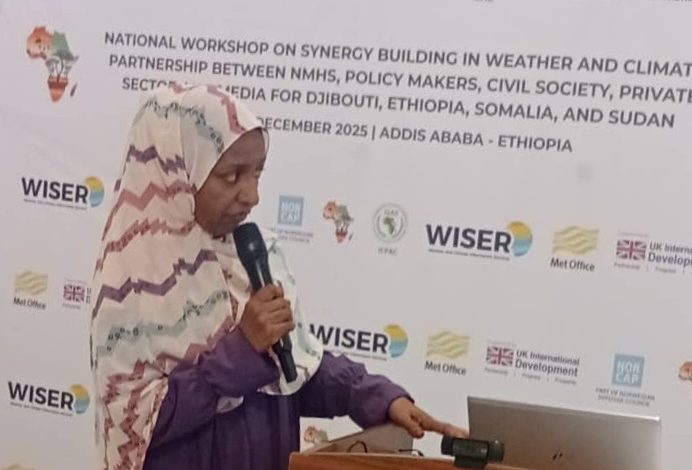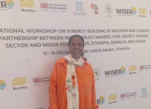 أكدت الأستاذة سارة محمود، مسؤولة المعلومات المناخية في الهيئة العامة للأرصاد الجوية في حديثها أمام ورشة العمل الوطنية، حول بناء أوجه التكامل في الشراكه الخاصة بالطقس والمناخ ،بين هيئات الأرصاد الجوية،وصناع القرار ،المجتمع المدني ،القطاع الخاص ووسائل الإعلام في جيبوتي ،اثيوبيا ،السودان والصومال والتي انعقدت خلال الفترة من 15-19ديسمبر 2025 في العاصمة الإثيوبية أديس أبابا،اكدت أنه