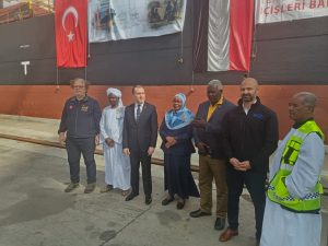 مفوض العون الإنساني السوداني تستقبل سفينة المساعدات الإنسانية الإيوائية التركية ببورتسودان