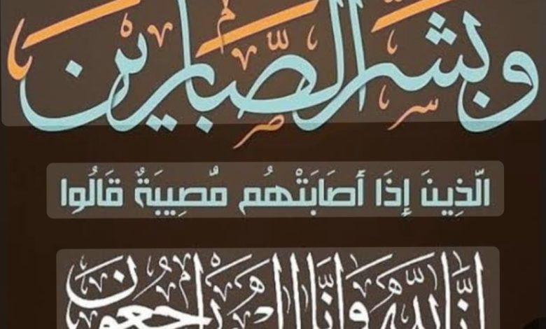 قال تعالى: (وَلَنَبْلُوَنَّكُمْ بِشَيْءٍ مِنَ الْخَوْفِ وَالْجُوعِ وَنَقْصٍ مِنَ الْأَمْوَالِ وَالْأَنْفُسِ وَالثَّمَرَاتِ وَبَشِّرِ الصَّابِرِينَ الَّذِينَ إِذَا أَصَابَتْهُمْ مُصِيبَةٌ قَالُوا إِنَّا لِلَّهِ وَإِنَّا إِلَيْهِ رَاجِعُونَ أُولَئِكَ عَلَيْهِمْ صَلَوَاتٌ مِنْ رَبِّهِمْ وَرَحْمَةٌ وَأُولَئِكَ هُمُ الْمُهْتَدُونَ.)