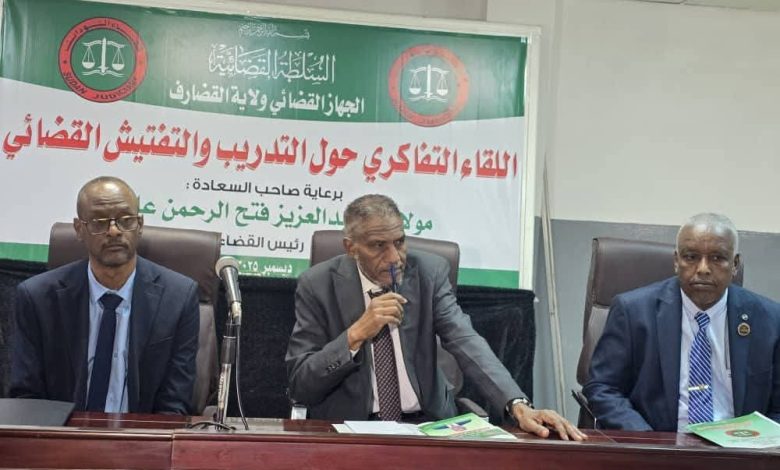 من جانبه أوضح رئيس إدارة التدريب بالسلطة القضائية مولانا الزين بشير الزين ان هذا اللقاء يأتى امتدادا للقاءات السابقة لتوحيد الرؤى العدلية والقضائية والأحكام وفق منهجية التدريب من جهته اكد رئيس الجهاز القضائي بالقضارف مولانا برير عمر برير ان اللقاء يعكس الاهتمام بالتدريب والتفتيش وبناء القاضى المهنى والمؤهل واستغلالية القضاء ومواكبة التطورات المختلفة وترسيخ سيادة حكم القانون وقدم مولانا برير تقريرا مفصلا حول انجازات الجهاز القضائي بالقضارف في المرحلة الفائتة وملامح من خطة العام الجديد .