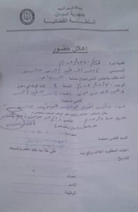 أنت مكلف بالحضور أمامي بديوان محكمة الدامر الجزئية في يوم ٣٠/ ١٢/ ٢٠٢٥م الساعة التاسعة صباحا لأخذ أقوالك في دعوى وهيب الصافي عباس // ضد // نادر الطيب أحمد