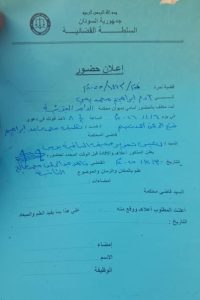 أنت مكلف بالحضور أمامي بديوان محكمة الدامر الجزئية في يوم ٦/ ١/ ٢٠٢٦م الساعة الثامنة والنصف صباحا لأخذ أقوالك في دعوى فتح الرحمن أحمد نعيم / ضد / نظيفة محمد حامد إبراهيم