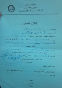 أنت مكلف بالحضور أمامي بديوان محكمة الدامر الجزئية في يوم ٧/ ١/ ٢٠٢٦م الساعة التاسعة صباحا لأخذ أقوالك في دعوى عبدالمحسن آدم يعقوب // ضد // آدم اتيم علي حسن