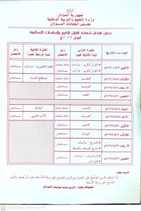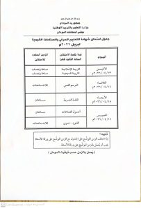 اعلنت وزارة التعليم والتربية الوطنية في السودان، جدول امتحانات الشهادة الثانوية 2026م المحدد انعقادها في الثالث عشر من أبريل المقبل .