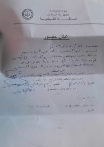 أنت مكلف بالحضور أمامي بديوان محكمة الدامر الجزئية في يوم ١٢ / ٢/ ٢٠٢٦م الساعة التاسعة والنصف صباحا لأخذ أقوالك في دعوى صديق الحاج عبدالله / ضد / عبدالعزيز السعيد