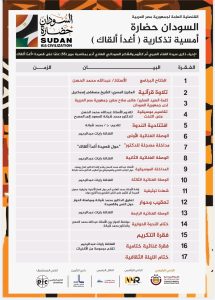 وتأتي فعاليات (السودان حضارة) تحت إشراف وتنظيم القنصل العام لجمهورية مصر ببورتسودان الأستاذ أحمد يوسف، وبمشاركة واسعة من نجوم الأداب والفن من مصر والسودان، وذلك بعد مرور 55 عاما  على إنتاج أغنية (أغدا ألقاك ) التي جمعت بين حرف الشاعر السوداني الهادي آدم وصوت سيدة الغناء العربي أم كلثوم وموسيقار الأجيال محمد عبد الوهاب.