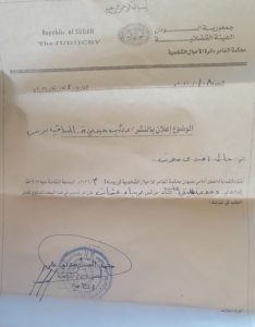 أنت مكلف بالحضور أمامي بديوان محكمة الدامر دائرة الأحوال الشخصية في يوم ١٢/ ٣/ ٢٠٢٦م الساعة الثامنة صباحا لأخذ أقوالك في دعوى تطليق للغيبة من قبل/ رجاء عثمان، فإن لم تحضر في هذا الميعاد الدعوى فصل الطلب في غيابك.