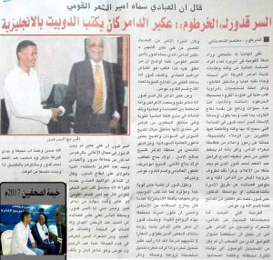 السر قدور لـ”الخرطوم” : عكير الدامر كان يكتب الدوبيت بالانجليزية