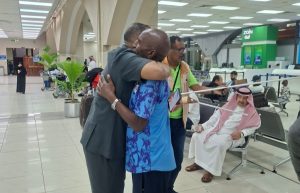 وقد وصلت البعثة لمطار الملك عبد العزيز بجدة ووجدت استقبالا حارا من قنصلية السودان العامة بجدة بقيادة القنصل محمد الحسن بعشوم والمستشار مرتضى محمد أحمد والعلاقات العامة عادل علي النور وعثمان عبد السلام وممثل الاتحاد السعودي لكرة القدم والرابطة الرياضية بمنطقة مكة المكرمة بقيادة المستشار القانوني خلف الله حسين النور والأستاذ صلاح باوارث والأستاذ إبراهيم العبيد والأستاذ عوض الكريم عمر وخالد الجزولي وسمير ابو مازن وصلاح الحويج الذين أكملوا إجراءات دخولها في وقت وجيز.