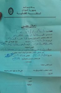 أنت مكلف بالحضور أمامي بديوان محكمة الدامر الجزئية في يوم ٢٧ / ٤/ ٢٠٢٦م لأخذ أقوالك في دعوى علي محمد نور ضد / عمر عثمان عبد الكريم