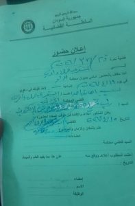 أنتم مكلفون بالحضور أمامي بديوان محكمة الدامر الجزئية في يوم ١٩ / ٤/ ٢٠٢٦م الساعة : ٩ لأخذ أقوالكم في دعوى نسيبة الصادق أحمد ضد/ المنتصر عبدالرحمن وآخرين