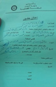 أنت مكلف بالحضور أمامي بديوان محكمة الدامر الجزئية في يوم ٢٦/ ٤/ ٢٠٢٦م الساعة التاسعة صباحا لأخذ أقوالك في دعوى محمد قسم الله عباس //ضد//محمد حمدين إبراهيم محمد