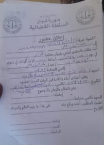 أنت مكلف بالحضور أمامي بديوان محكمة الدامر الجزئية في يوم ٢٣/ ٤/ ٢٠٢٦م الساعة صباحا لأخذ أقوالك في دعوى أيمن محي الدين //ضد// عبدالرحمن علي