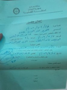 أنت مكلف بالحضور أمامي بديوان محكمة الدامر الجزئية في يوم ٣/ ٥/ ٢٠٢٦م الساعة التاسعة والنصف صباحا لأخذ أقوالك في دعوى الوسيلة خالد أحمد سليمان //ضد// النذير ضو البيت مضوي