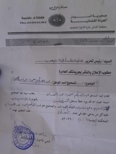 تقدم إلينا المدعو/ عبدالعظيم محمود حمد هساي، بطلب يريد فيه تصحيح اسمه حيث أنه قد ورد خطأ بسجل القطعتين رقم (٢٦٠) مربع ٣٦ و ٢٦١ مربع ٣٦ باسم / عبدالعظيم محمود حمد والصحيح هو/ عبدالعظيم محمود حمد هساي، عليه كل من يدعي حقه في هاتين القطعتين عليه الحضور لهذه المحكمة لجلسة ٧ / ٥ / ٢٠٢٦م